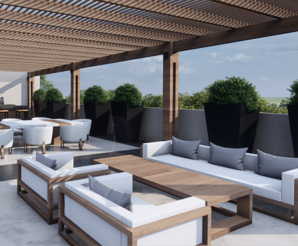Nuestra terraza común con acabados de alta calidad y mobiliario de exterior diseñado para tu confort. Un espacio ideal para relajarte, convivir y disfrutar.