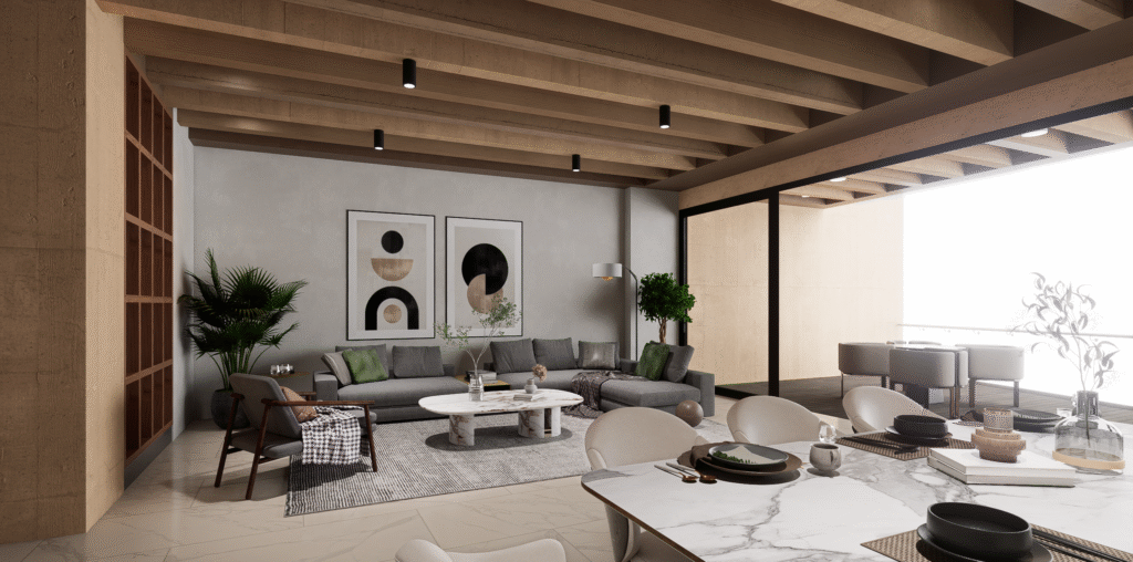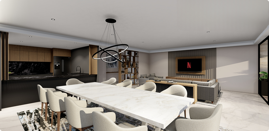 Dentro de los entregables se cuentan con diferentes opciones a elegir de acabados en pisos y muros, accesorios y muebles de baño y de configuraciones de espacios, una de ellas siendo que la cocina puede hacerse abierta integrada al espacio social, cerrada para minimizar el ruido y olores en áreas comunes o una combinación de ambas.